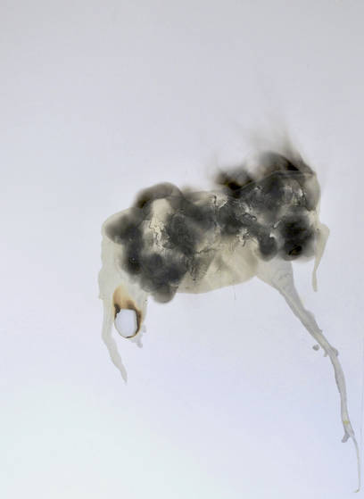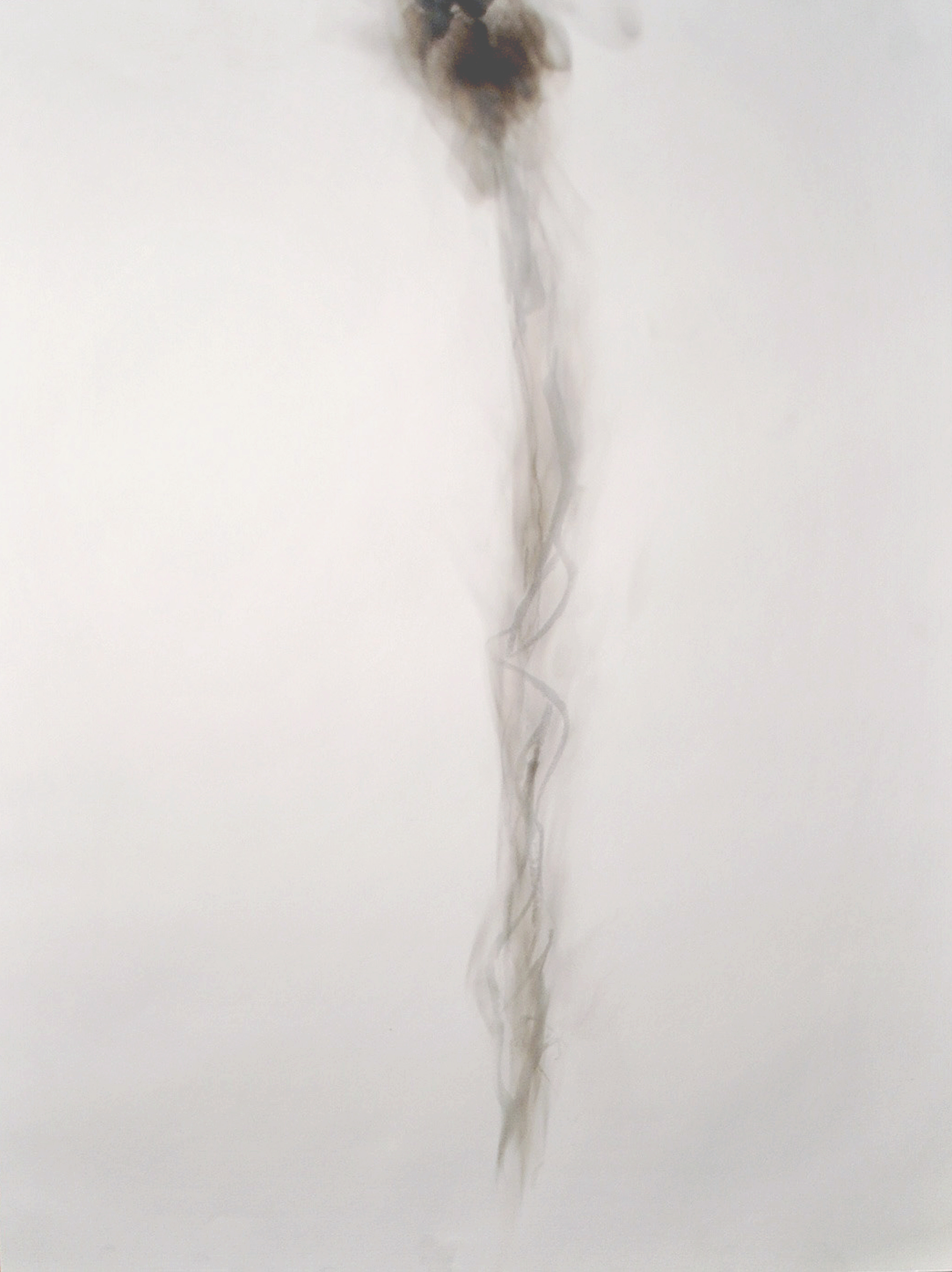 The prints are made by absorbing burned wax and smoke, usually from a candle, onto paper. I create the images to resemble organic forms in order to offer my perspective on the juxtaposition of natural and artificial; a conversation that is becoming increasingly more relevant as reality and technology continue to merge.