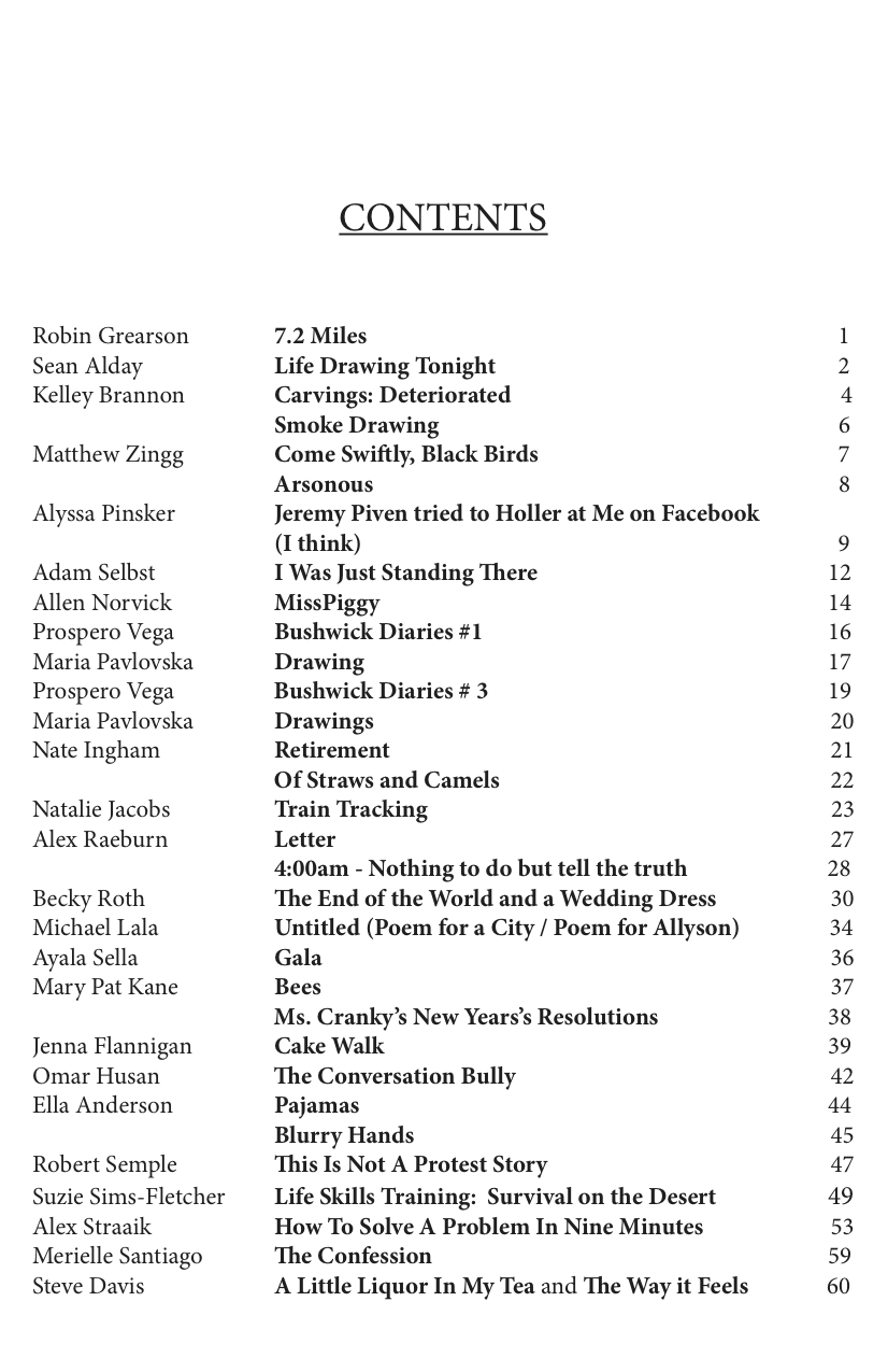 Design and Layout for The Bodega Bruise Anthology. A sample of the first three pages below:
